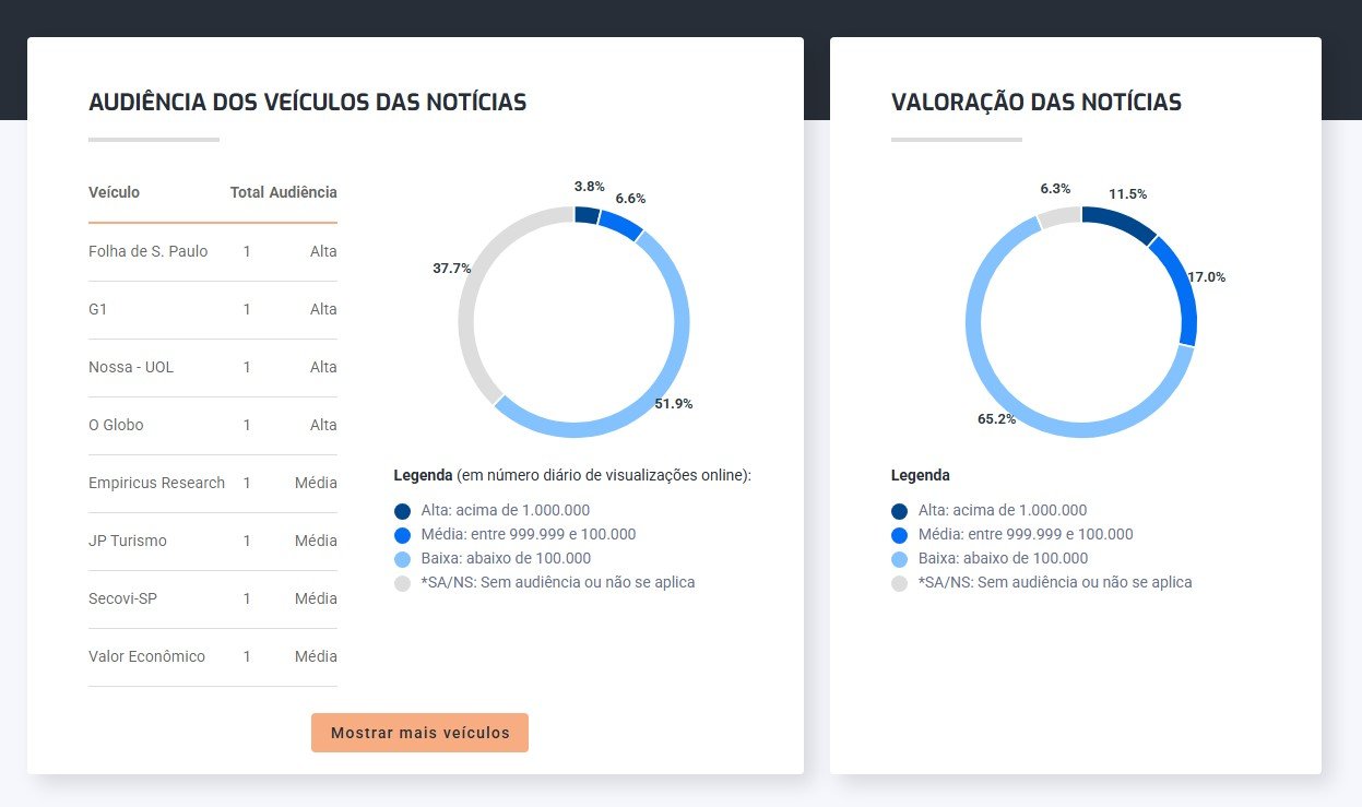 Essas notícias foram publicadas por 106 veículos distintos: 4 com alta audiência, 7 com média audiência, 55 com baixa audiência e 40 sem audiência ou que não se aplica. A classificação é baseada na maior audiência por veículos, entre 09/11/2024 – 13/06/2025.